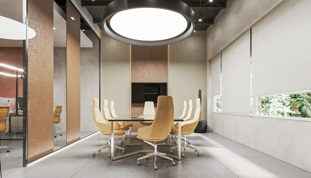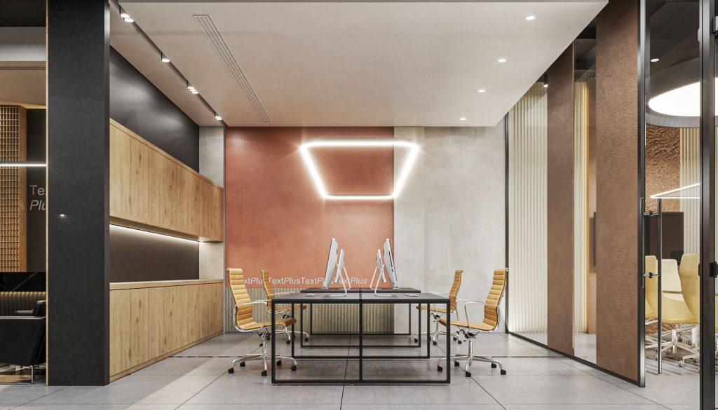 در این پروژه برای رهایی از فضاهای سرد و بی روح اداری یک پالت رنگی گرم و ملایم انتخاب کردیم . برای اجرای بخشی از پالت رنگی و همچنین اضافه کردن کمی بافت متریال چوب را به عنوان متریال شاخص پروژه انتخاب کردیم.
