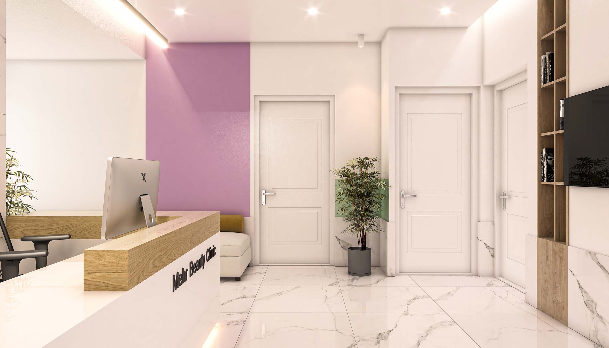 روزی در قسمت شمالی شهر تهران، در محلهی تجریش، یک کلینیک زیبایی به نام «کلینیک مهر» تصمیم به تغییر گرفت. مأموریت ما در اینجیر، طراحی داخلی کلینیک در کوتاهترین زمان و کمترین هزینهی ممکن بود. در نتیجه، ما تنها دو روز فرصت داشتیم تا طراحی کلینیک را به اتمام برسانیم. همچنین، کارفرما خواستار این بود که خودش پروژه را اجرا کند و ما تنها مسئول نظارت بر اجرای درست طرح بودیم. از همان لحظهای که متوجه شدیم در طراحی این پروژه با محدودیتهای زمانی و مالی روبهرو هستیم، احساس کردیم که این چالش برای ما فرصتی است تا با خلاقیت و نبوغ خود، کاری بینظیر و منحصربهفرد را به انجام برسانیم. پس از سالها کار درحوزهی معماری، این پروژه برای خود ما نیز درس بزرگی داشت تا بار دیگر قدرت معماری برای ما یاداور شود، که چطور یک طراحی ساده میتواند کامل و متناسب با فضا باشد و تغییرات بزرگی ایجاد کند. عکسهای پیش از طراحی این پروژه گواه این حرف است.