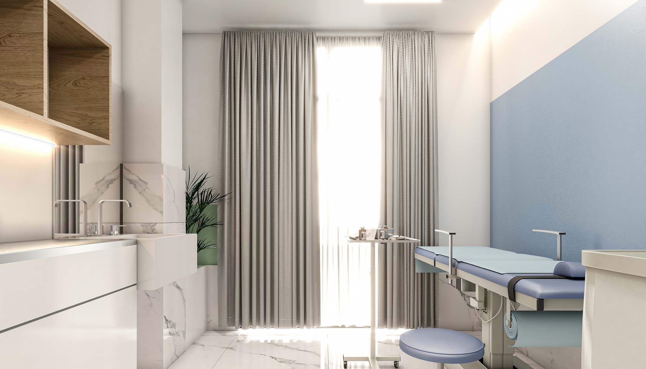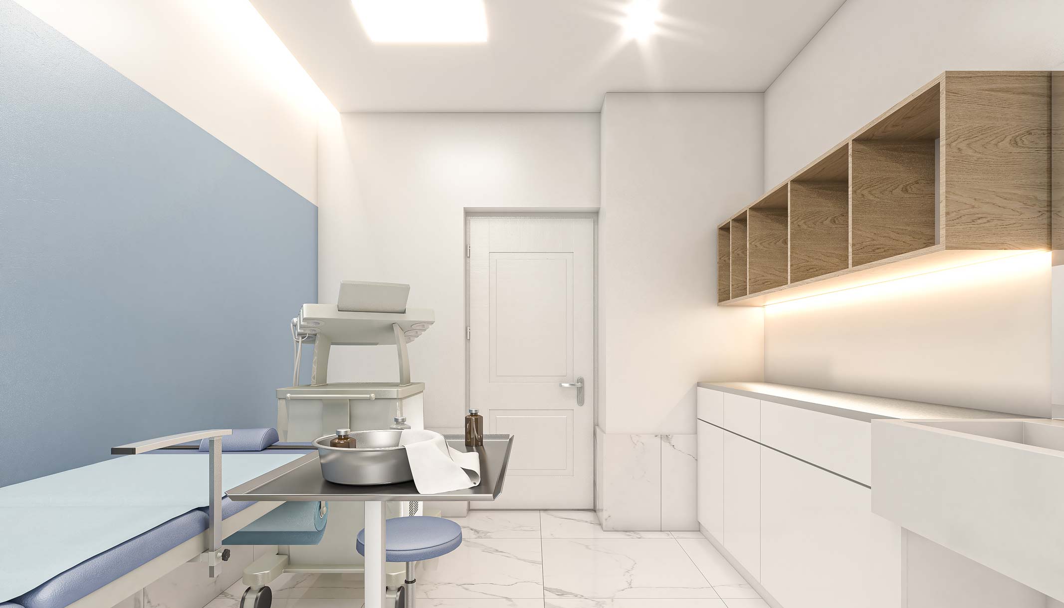 در طراحی فضاهای مختلف کلینیک از پالت رنگی متنوعی استفاده کردیم تا علاوه بر تعریف بخشهای مختلف به انرژی و پویایی فضا بیفزاییم.