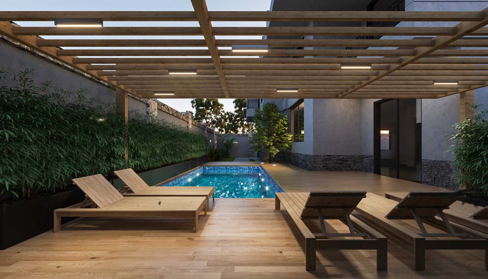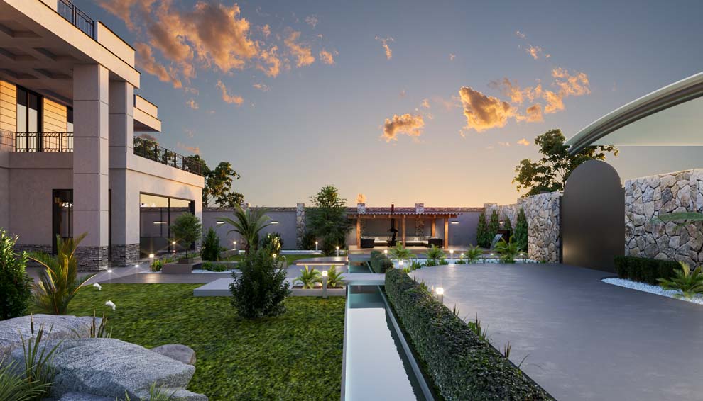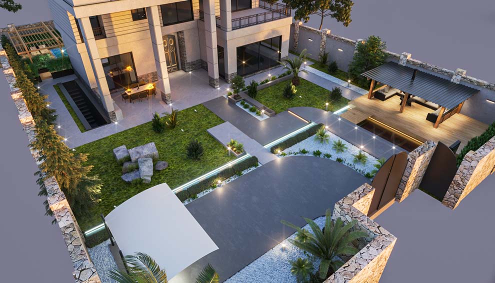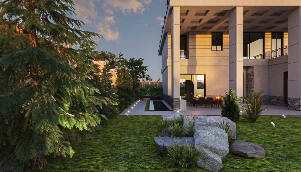 همانطور که پیشتر هم گفتیم کلیت ویلا طراحی و ساخته شده بود و ما باید هر آنچه که بود را تا حد ممکن مطابق با خواسته و سلیقه کارفرما طراحی میکردیم. ما محوطه را با توجه به نیازهای کارفرما طراحی کردیم و سعی کردیم درختان موجود در محوطه را حفظ کنیم و در طراحی محوطه نیز از آنها بهره ببریم.