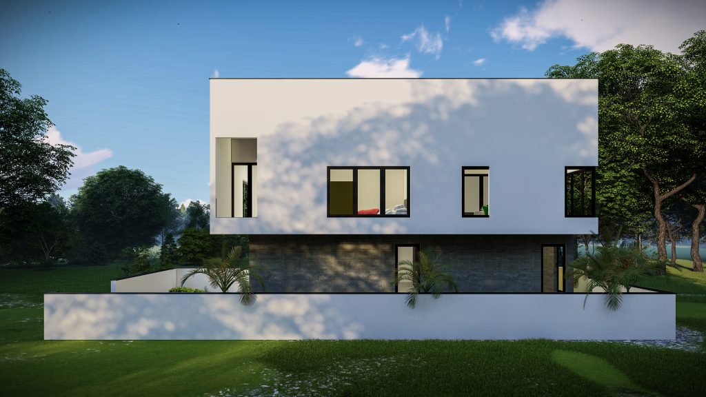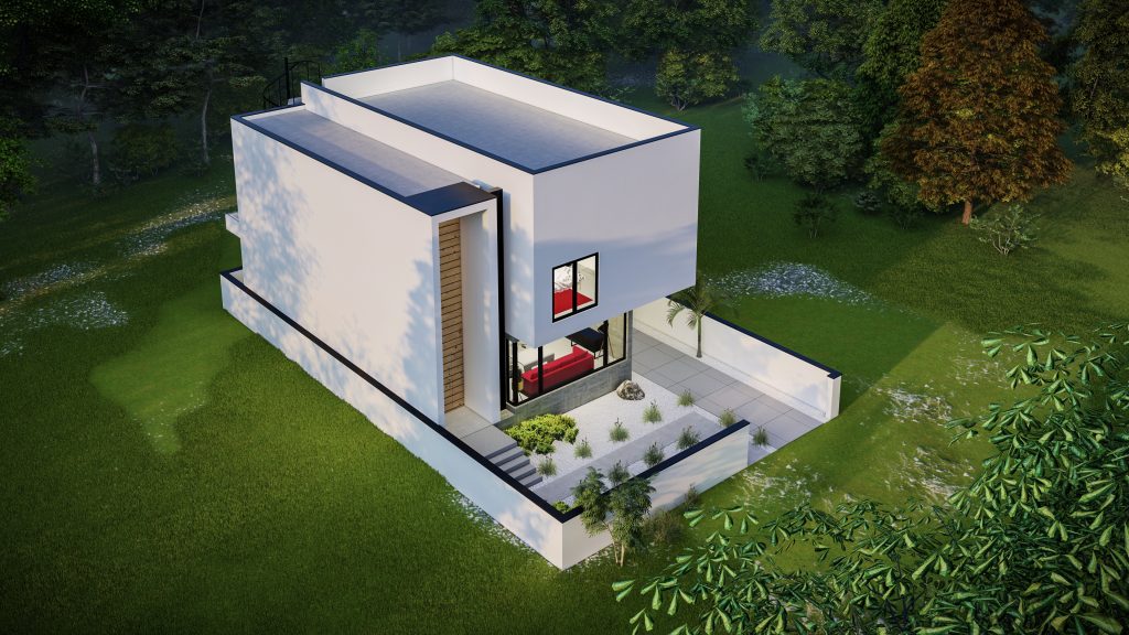با توجه به افزایش قیمت ساختمان، مردم به ساخت یا خرید ویلاهای کوچک علاقه مند شده اند. کارفرمای این ویلا نیز با هدف سرمایه گذاری و فروش، برای طراحی ویلا به ما مراجعه کردند، پس میبایست با کمترین هزینه بهترین نتیجه را رقم میزدیم. سبک مدرن بهترین انتخاب با کمترین ریسک برای این ویلا بود. حجم کلی ویلا متشکل از دو مکعب کنار هم است که مکعب بزرگتر طوری جانمایی شد که در نگاه اول معلق به نظر می رسد.